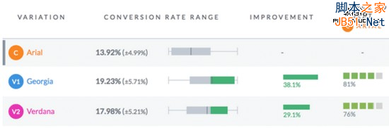 所有的這些都由分組測試(也叫A/B測試)得出的,并不是我個人觀點。使用類似VWO或Optimizely這類分組測試工具,能夠檢測出哪種字體最適合你的讀者,哪種方案更合適。