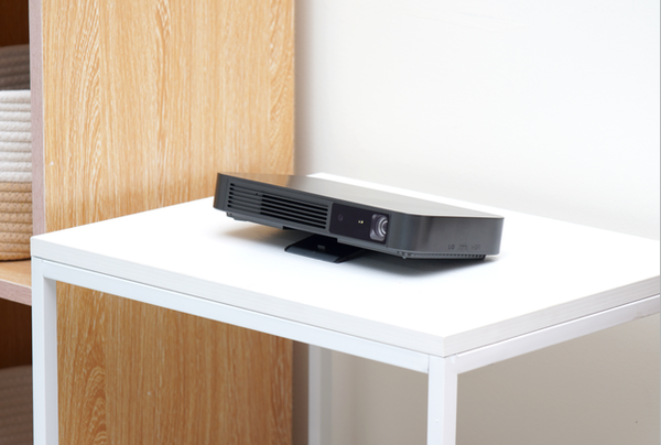 可以看到這款投影儀的外觀,除了體積小巧輕薄,大眼橙H3的顏色也是那種比較低奢的深灰色,放在家里很百搭,有一種金屬風的質感,機身上還自己帶了一個仰角支架,0~20°上下調節,這個小心機的設計還蠻貼心的,碰到有時候東西擋住或者不方便的時候,架起來往上投高一點,就搞定了。